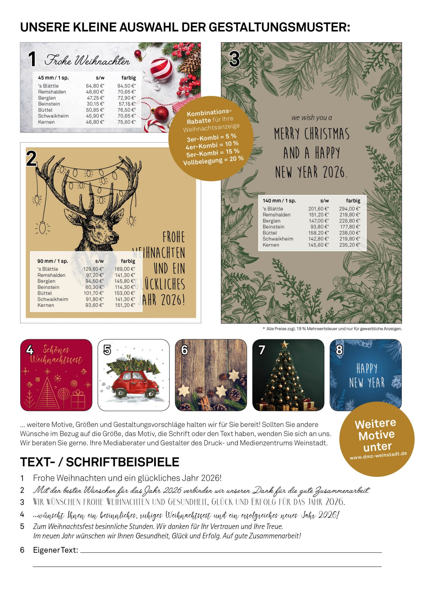 oder andere Gestaltungs- bzw. Textwünsche? Wir beraten Sie gerne!